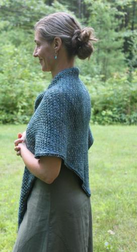 The Lizard Skin Shawl is knit from tip to tip. The shaping occurs by increasing along one side then decreasing up the other. It features a really interesting, allover textured stitch that resembles scales.